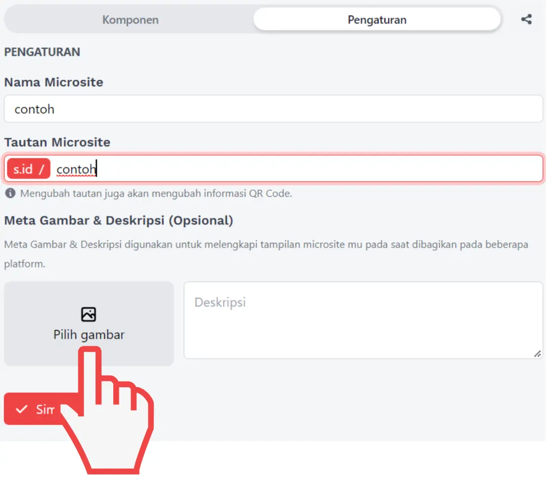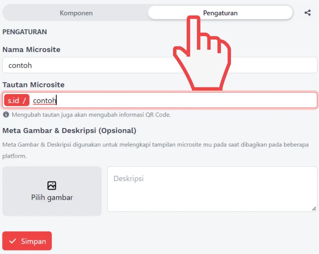 Meta Tag Microsite memungkinkan pengguna untuk membawa meta image dan deskripsi sendiri saat dibagikan ke teman terbaikmu melalui kanal sosial media atau perpesanan.