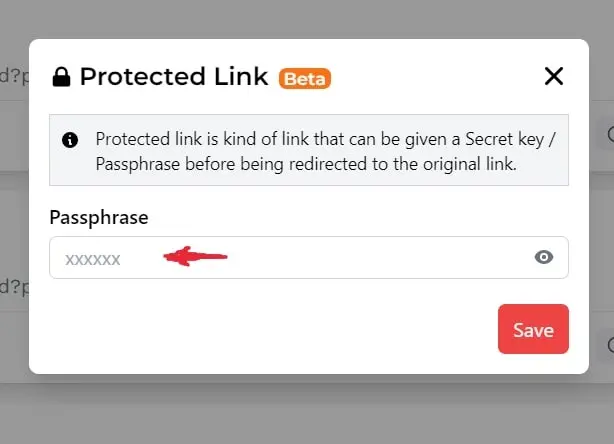 Protected link atau tautan yang dilindungi adalah jenis tautan dengan kunci rahasia sebelum diarahkan ke tautan asli. Sehingga, ketika orang ingin mengakses tautan kita, mereka perlu mengetahui kata sandi yang anda buat. Dengan begitu, tautan anda akan aman dari orang lain yang tidak berkepentingan.