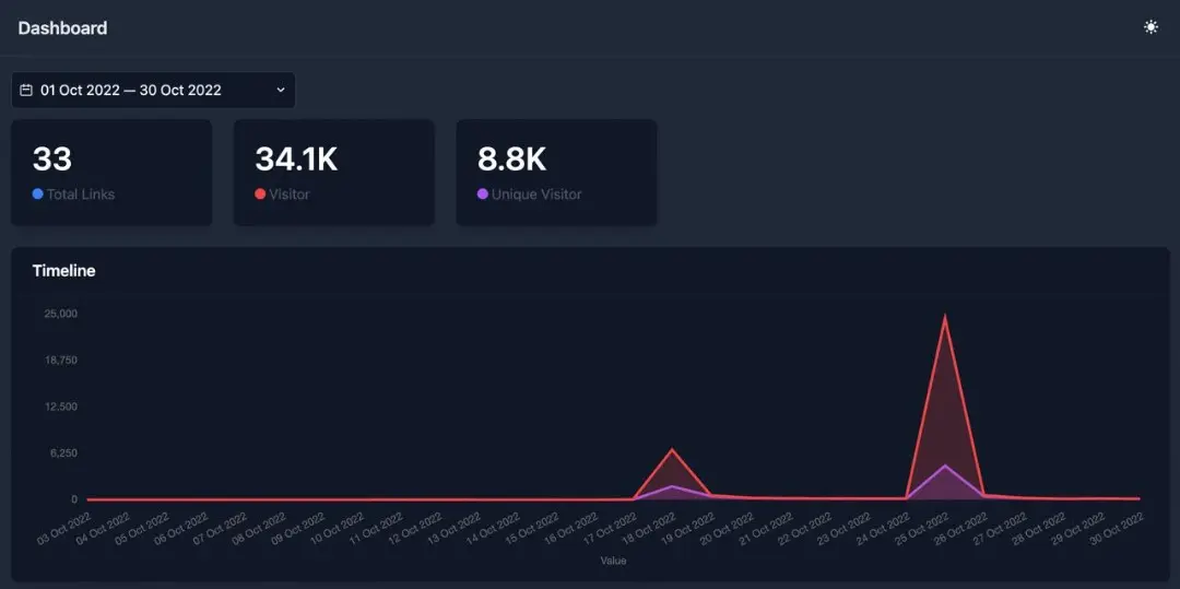 Sekarang para pengguna s.id bisa menggunakan mode gelap di dalam dashboard. Setelah anda login ke Dashboard s.id di sebelah pojok kanan atas ada logo bulan.