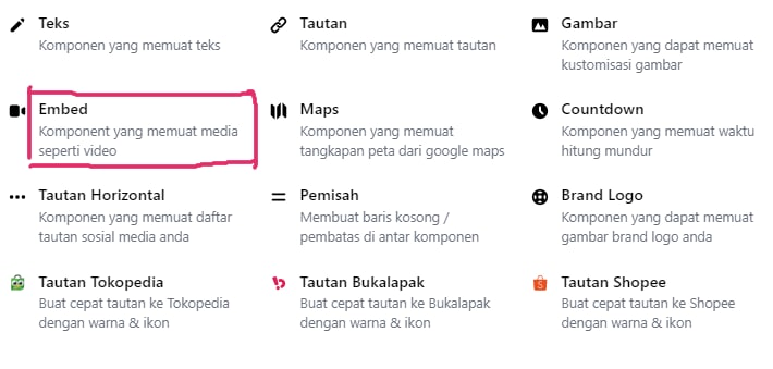 Embed adalah fitur yang dapat memuat tautan media sosial anda seperti video, lagu,Untuk saat ini kami mendukung jenis tautan berikut: