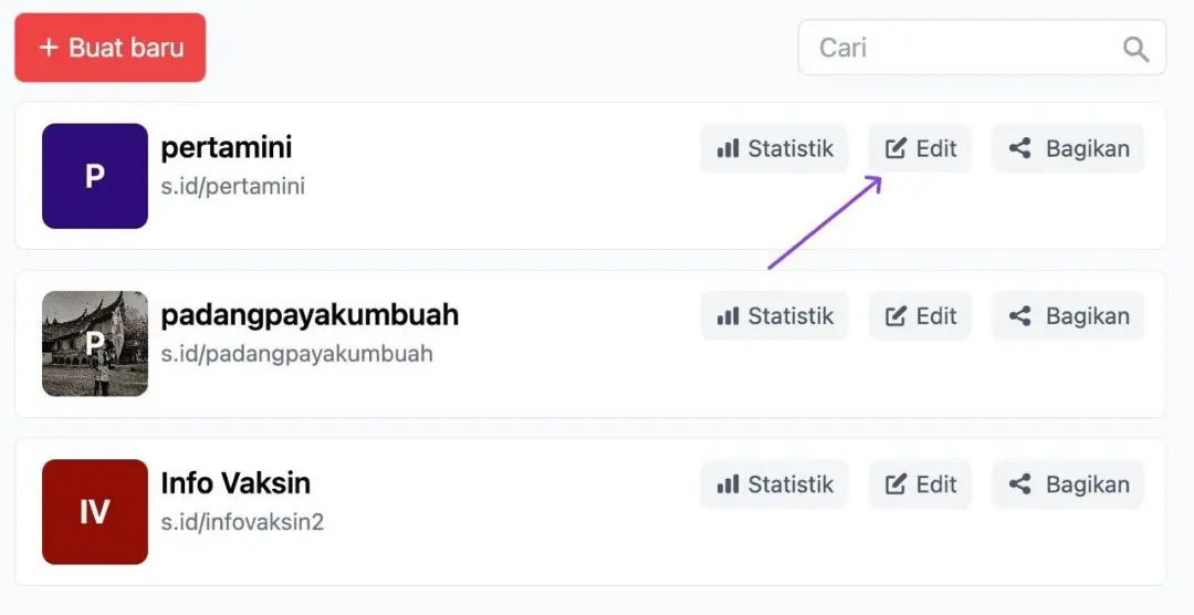 3. Pilih nama Microsite yang ingin di ubah kemudian klik Edit
