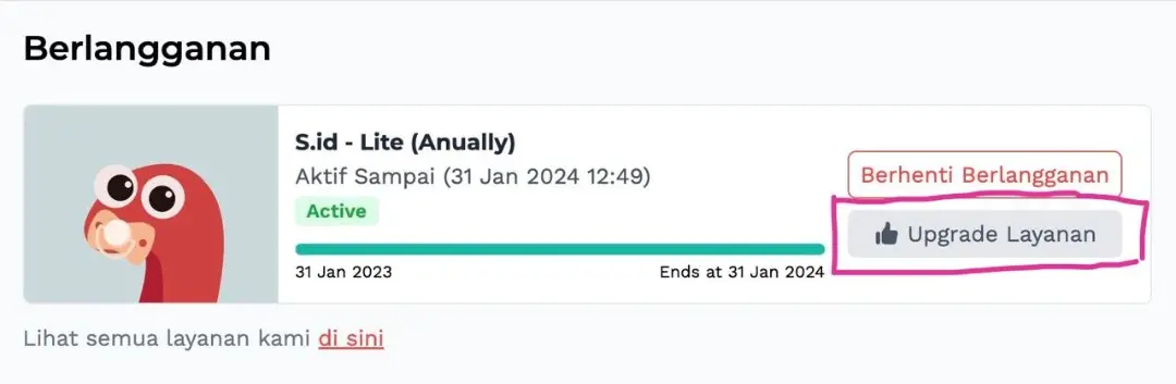 3. Klik "Upgrade Layanan"