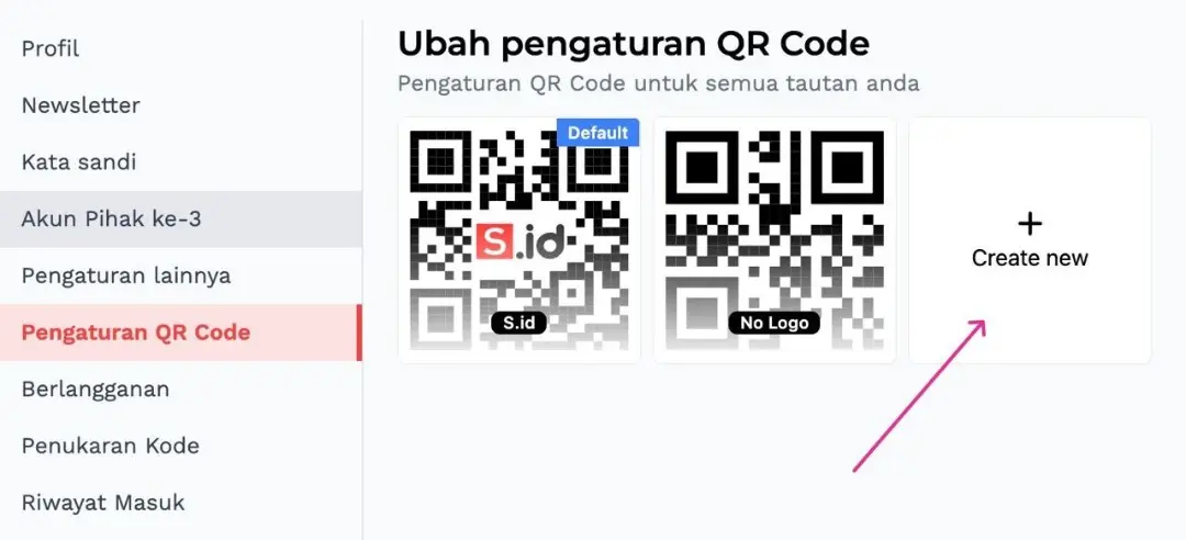 3. Pilih Pengaturan QR code