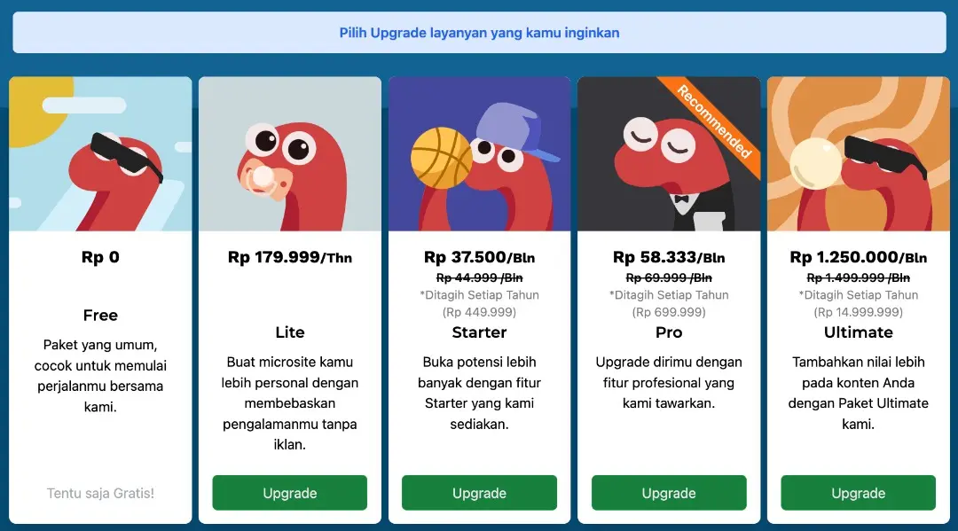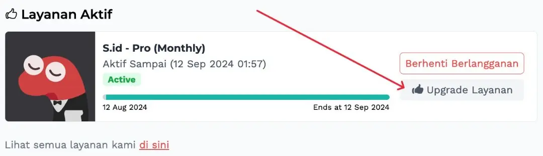 3. Selanjutnya pilih "Upgrade Layanan"